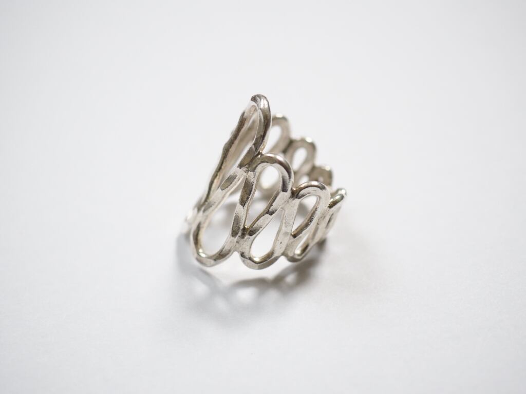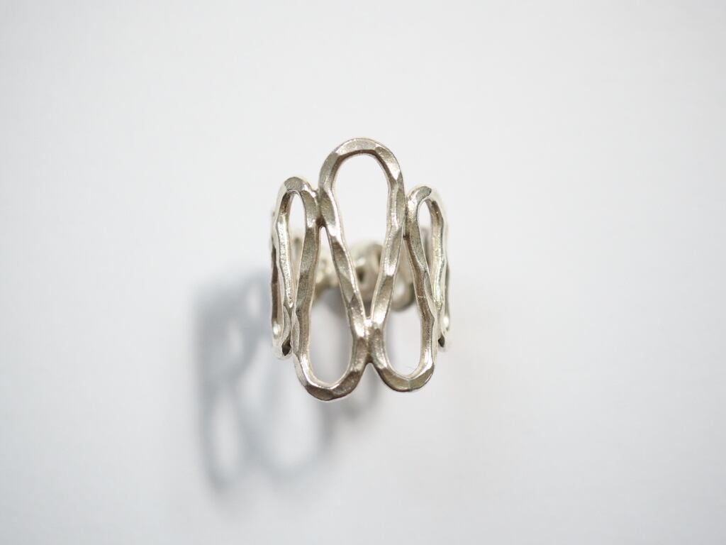 滑らかなラインが連なり、透かし模様のように軽やかな印象を与えるオープンリングです。