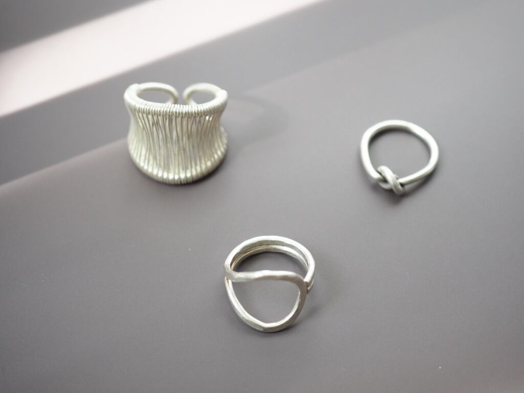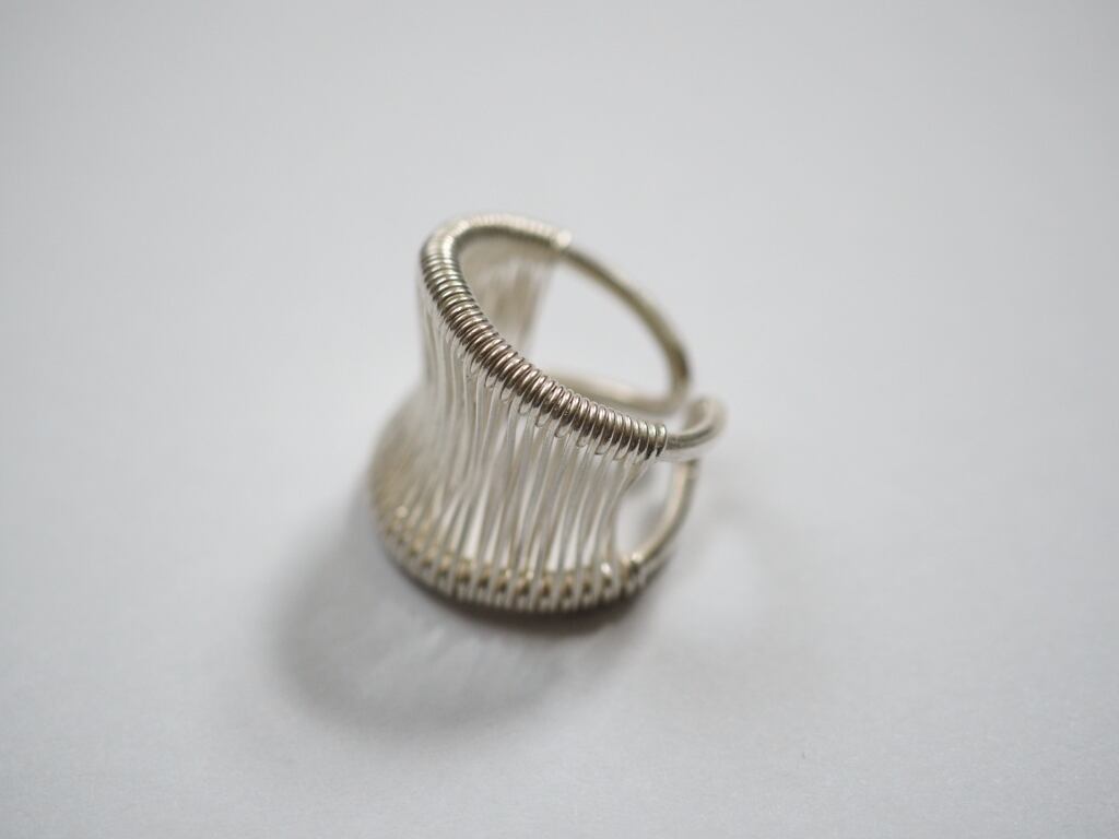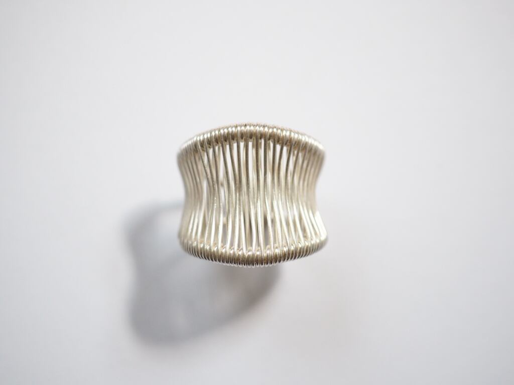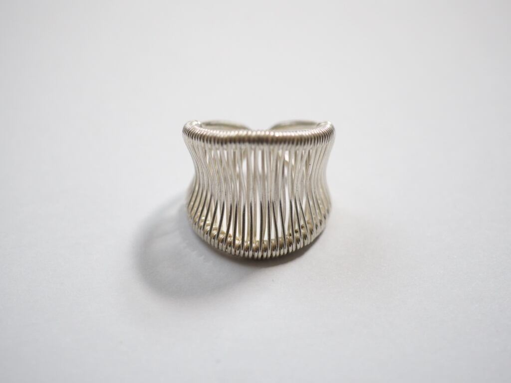 細いシルバーラインを束ねたようなユニークな質感が印象的なデザインリング。