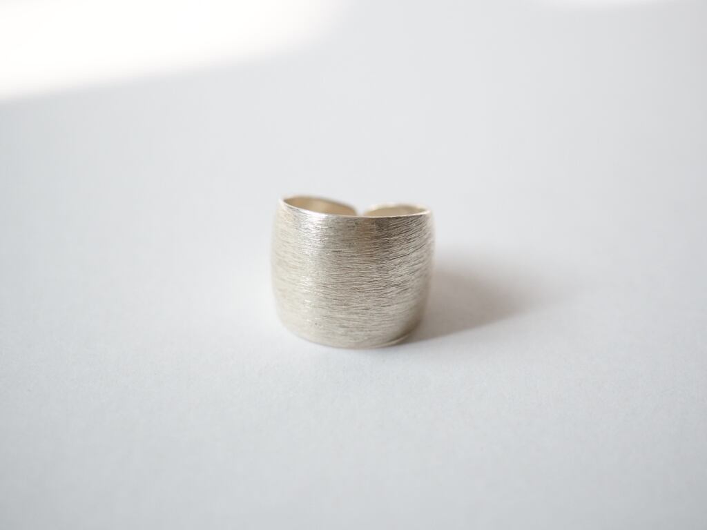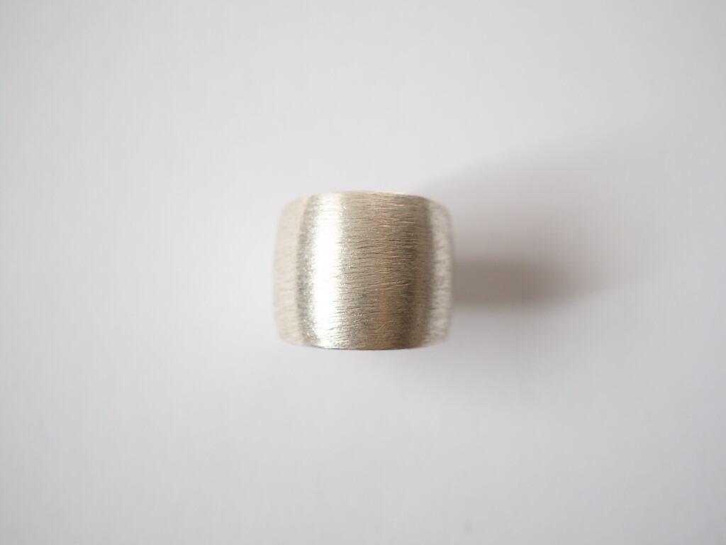 繊細なヘアラインテクスチャが光を柔らかく受け止める、上品な印象のワイドリング。