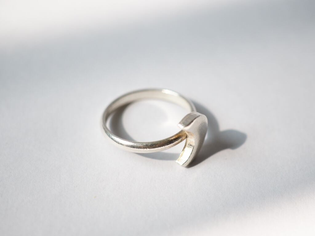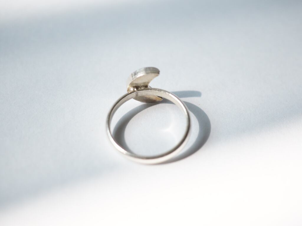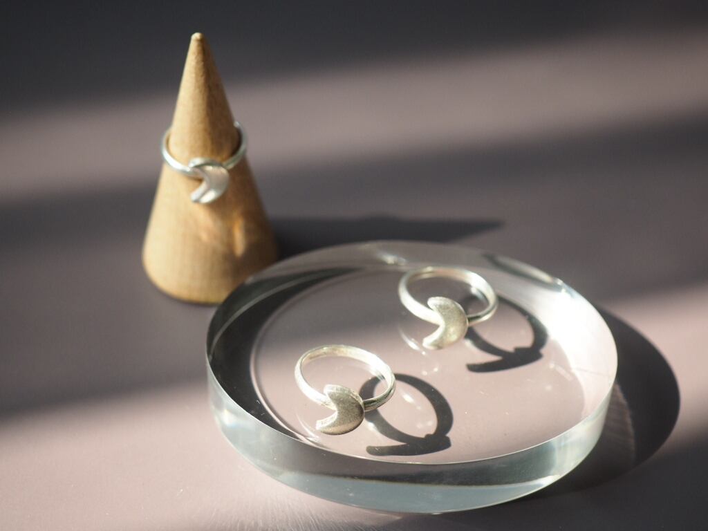 夜空に浮かぶ月のように、静かに輝く三日月モチーフのカレンシルバーリング。