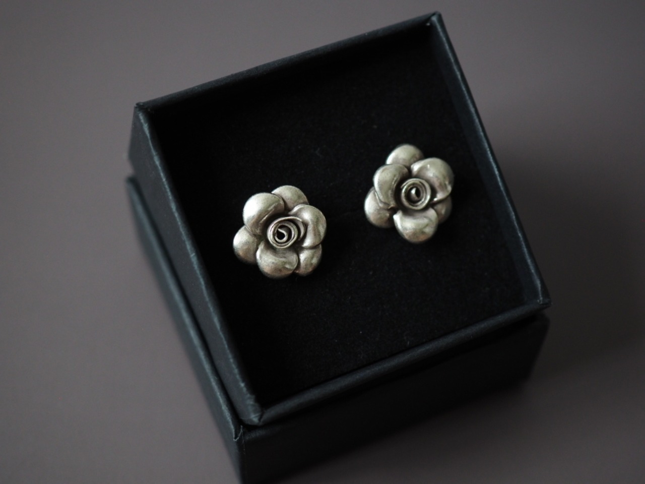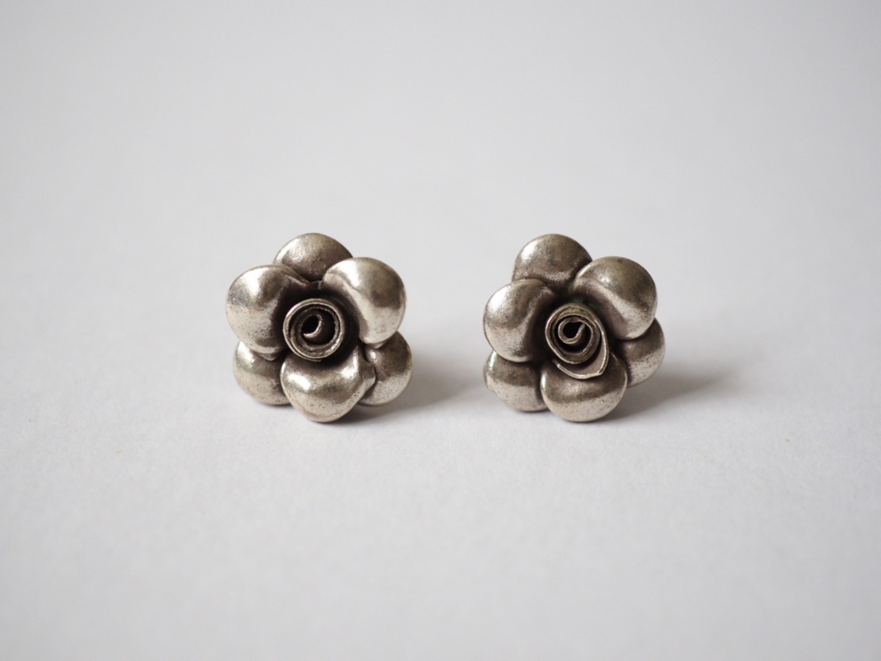 可憐なバラの花を象った、カレンシルバー製のスタッドピアス。