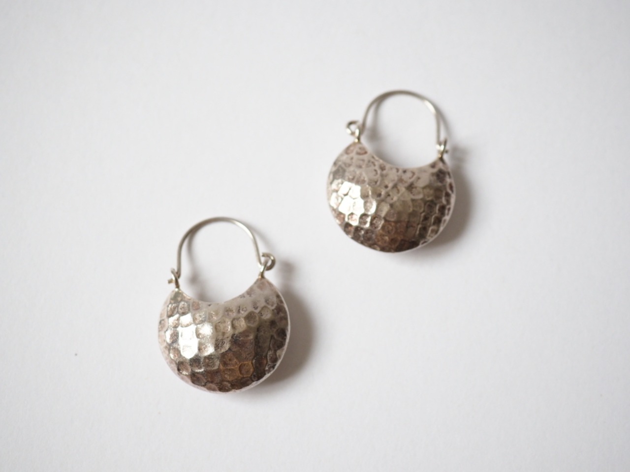 半月のようなシルエットが印象的な、カレンシルバーのフープピアス。