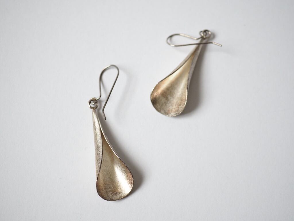 すらりとしたしずく型のフォルムが美しい、カレンシルバーのフックピアス。