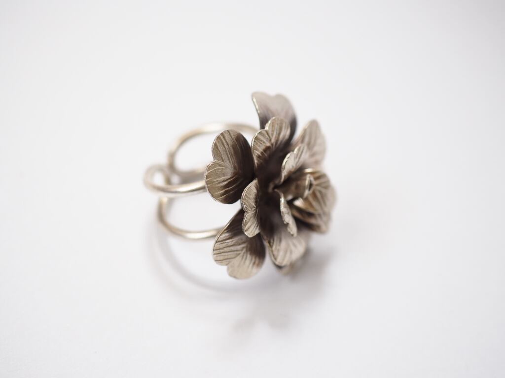 立体的に重なる花びらが印象的な、カレンシルバーのフラワーリング。