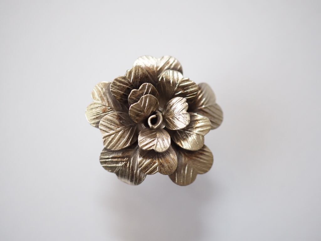 一枚一枚の花びらには繊細な彫りが施され、手仕事ならではの温かみと立体感が感じられる特別な一点です。