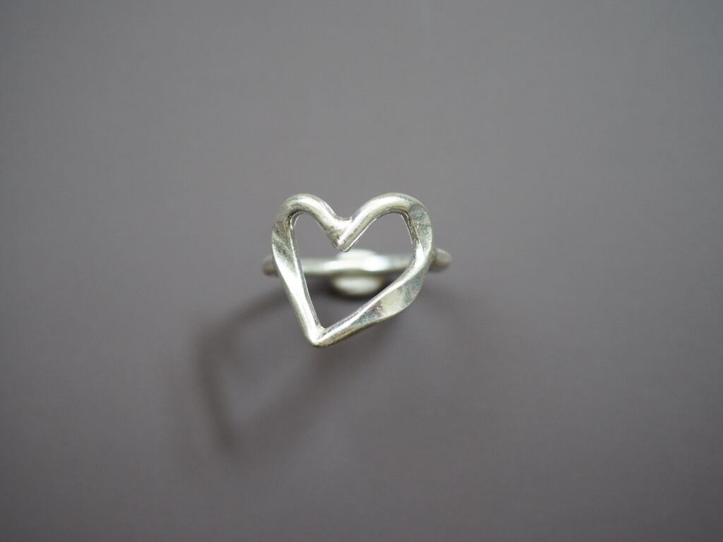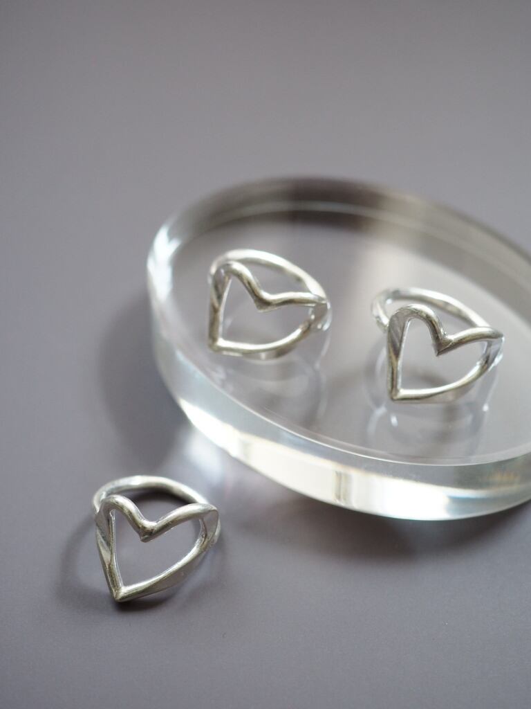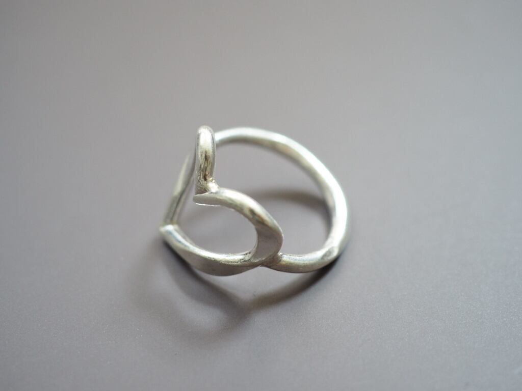 手描きのような柔らかなラインで描かれた、オープンハートモチーフのカレンシルバーリング。