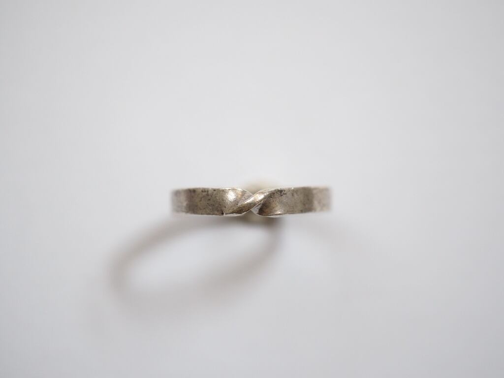 シンプルなフォルムの中に、さりげないひねり(ツイスト)を効かせたカレンシルバーのリング。