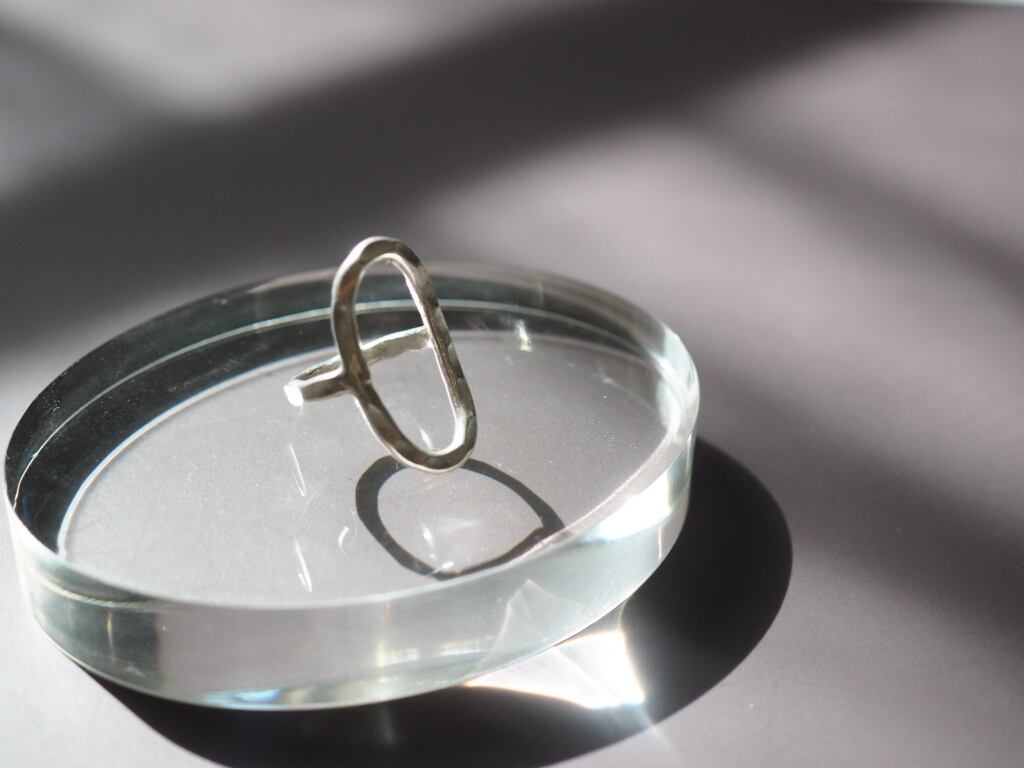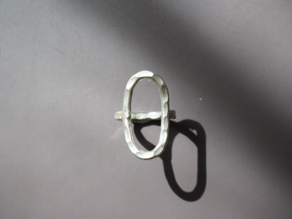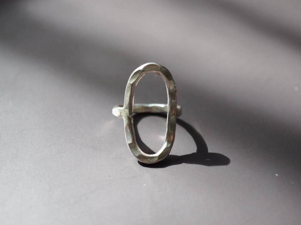 ゆらぎのあるオーバルフレームが印象的な、カレンシルバーのアートリング。